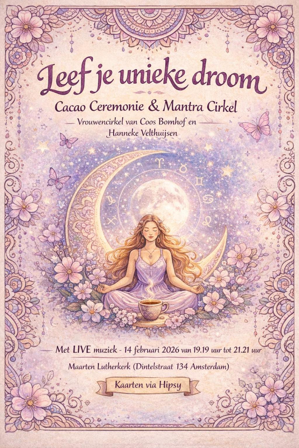 14 februari 2026: Cacao Ceremonie en Mantra workshop met Coos